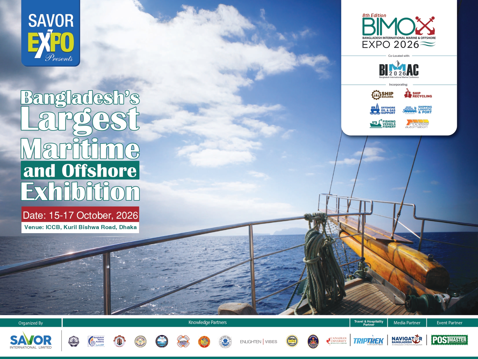 Bangladesh International Marine And Offshore Expo 2026 (BIMOX) is an International Maritime and Offshore industrial event that brings an International congregation of companies together at International Convention City Bashundhara (ICCB), Dhaka, Bangladesh.